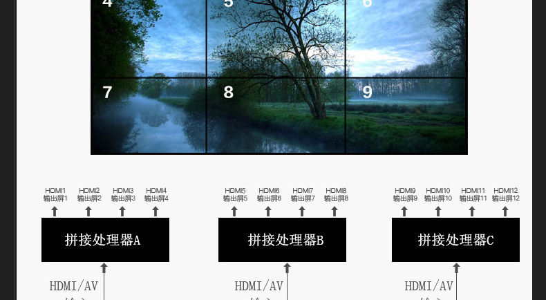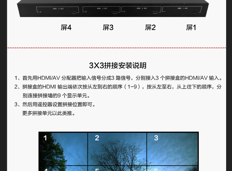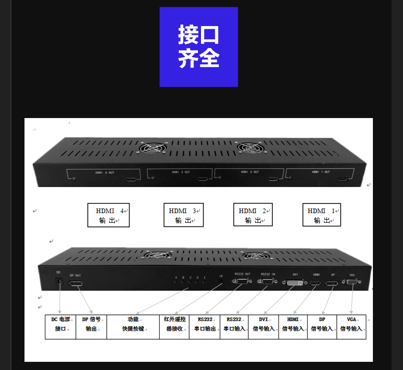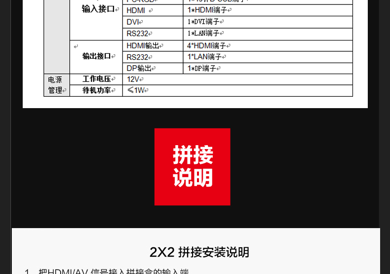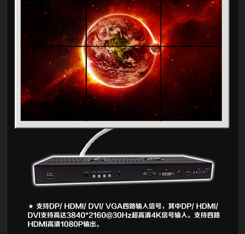 • HDMI 4K電視拼接器1進4出畫面分割器超高清電視機拼接處理器DP