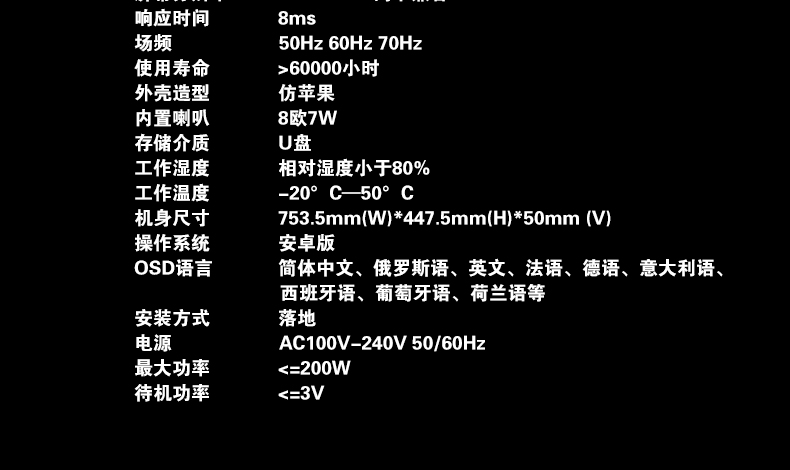 • 32寸壁掛廣告機液晶超薄高清單機版廣告播放器