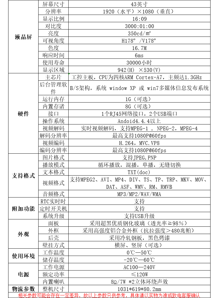 • 43英寸壁掛廣告機 橫屏豎屏分屏式 樓宇機場智能安卓網(wǎng)絡版 商用電視