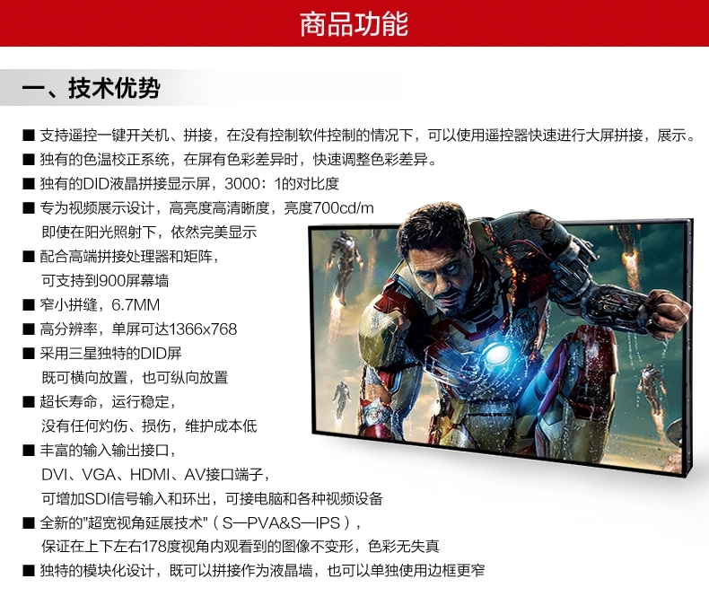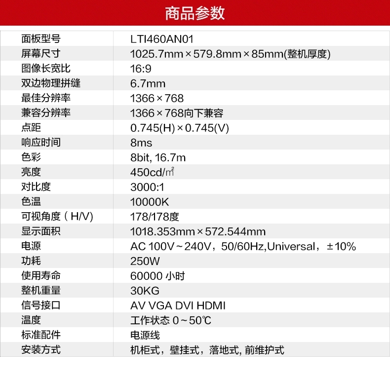 • 三星46寸液晶拼接屏超窄邊6.7mm拼縫LCD會(huì)議液晶電視墻LTI460AN01