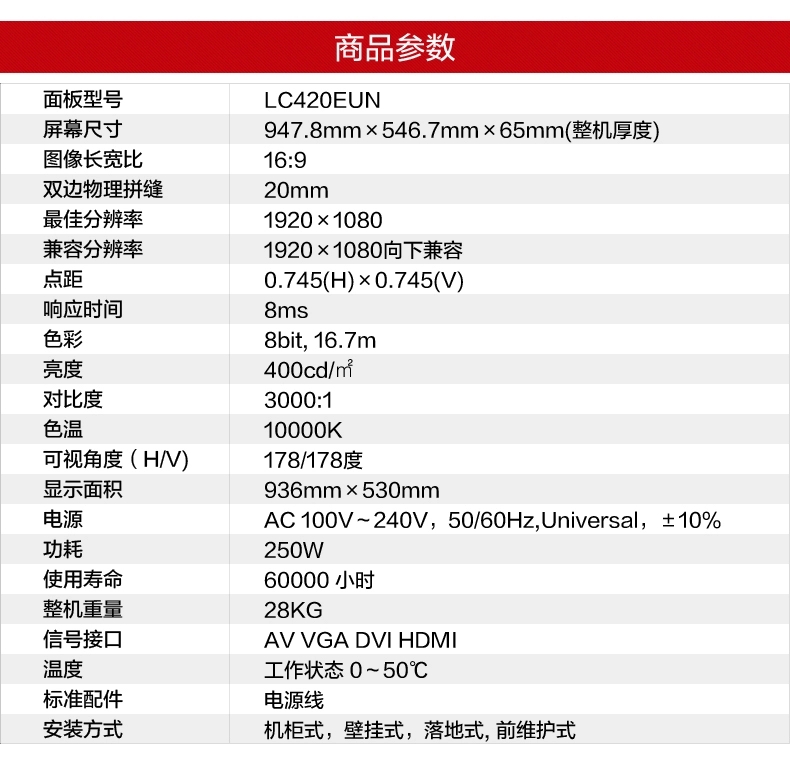 • LG42寸液晶拼接屏 雙邊拼縫20mmIPS硬屏